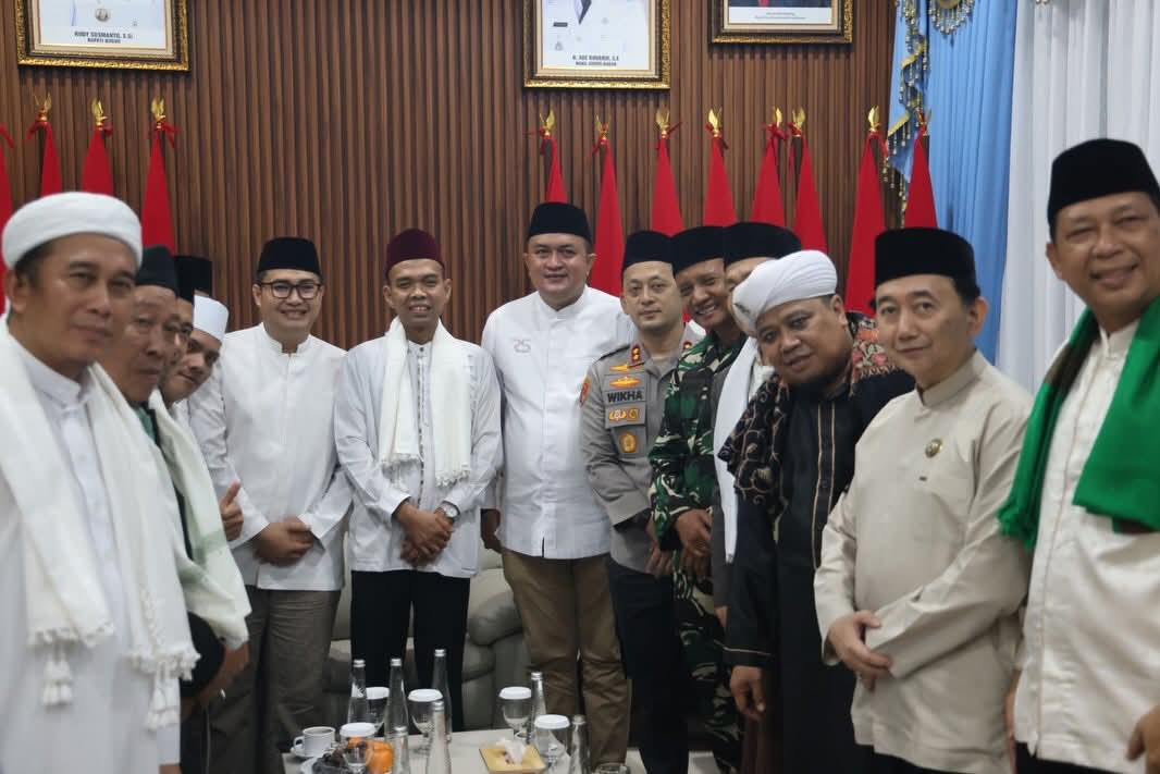 Cibinong- Bupati Bogor, Rudy Susmanto, menghadiri Tabligh Akbar bersama Ustadz Abdul Somad dalam rangka memperingati Isra Mi’raj Nabi Muhammad SAW yang berlangsung di Masjid Nurul Wathon, kawasan Pakansari, Cibinong pada Sabtu malam (24/1/26).