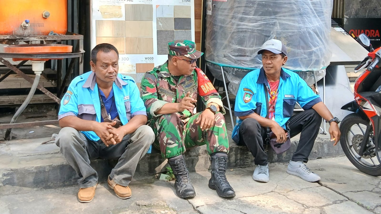 Surakarta, monitorjabarnews.com Babinsa Kratonan Koramil 03/Serengan Kodim 0735/Surakarta Kopka Resbiyanto pukul 08.30 wib melaksanakan komunikasi Sosial (Komsos) Dengan Bapak Yono dan Bapak Ahmad sebagai petugas Parkir di depan Toko Bangunan Karunia Jl. Gatot Subroto No. 210 Kratonan Serengan, Kota Surakarta. Kamis (09 Oktober 2025).