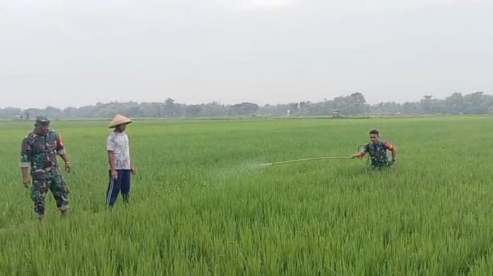 Penyemprotan massal ini dilakukan secara serentak di seluruh areal persawahan yang terindikasi adanya serangan hama ulat. Babinsa bersama dengan anggota kelompok tani dengan sigap menyemprotkan cairan pestisida yang ramah lingkungan ke tanaman padi.