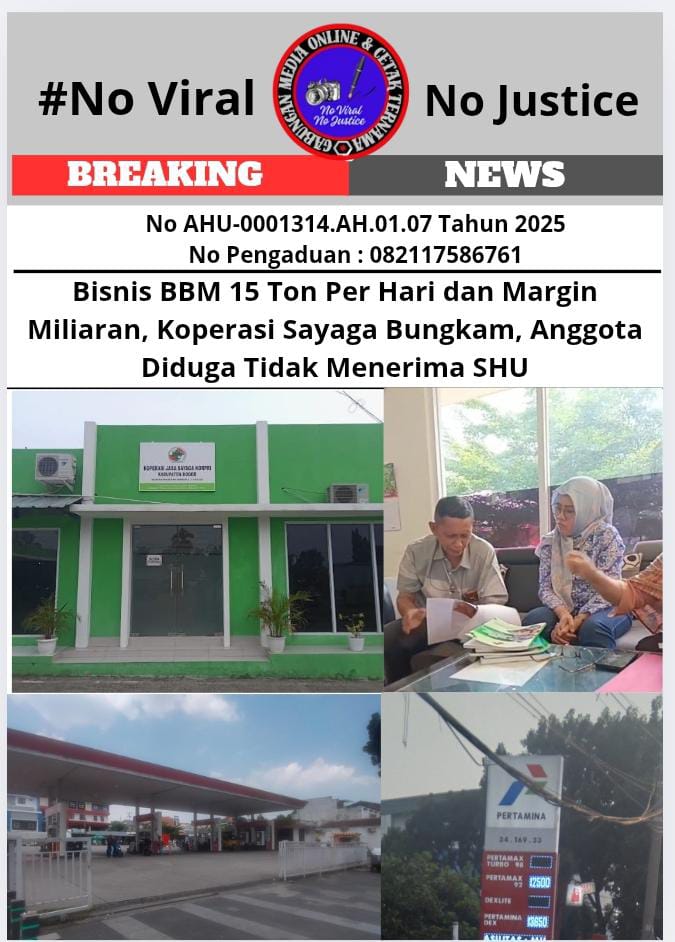 Cibinong, monitorjabarnews.com 14 Agustus 2025 – Koperasi Jasa Sayaga Korpri Kabupaten Bogor, Jawa Barat, memilih bungkam terkait bisnis Bahan Bakar Minyak (BBM) 15 ton per hari dengan margin miliaran rupiah yang dijalankan melalui Stasiun Pengisian Bahan Bakar Umum (SPBU) 34.169.33.