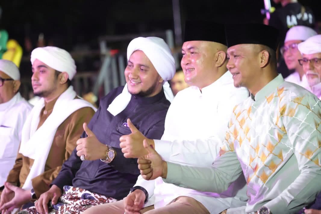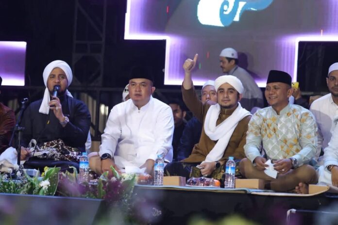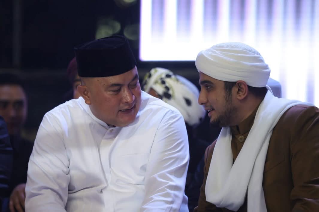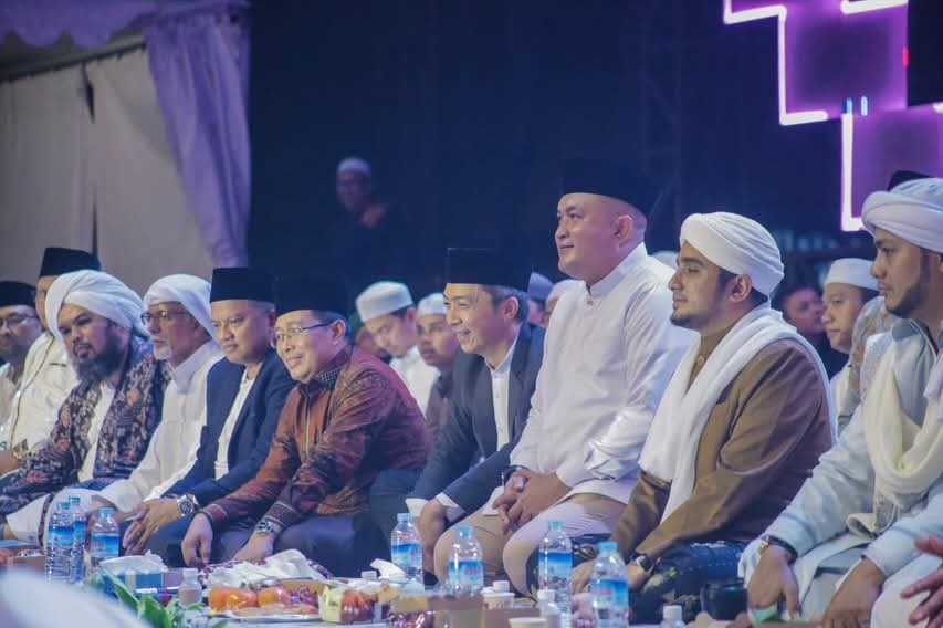 CIBINONG — Bupati Bogor, Rudy Susmanto, menghadiri peringatan Hari Lahir (Harlah) ke-16 Majelis Syababul Kheir Lil Habib Mahdi Bin Hamzah Assegaf yang digelar di Lapangan Panahan Gelora Pakansari, Cibinong, pada Sabtu malam (31/1/2026).