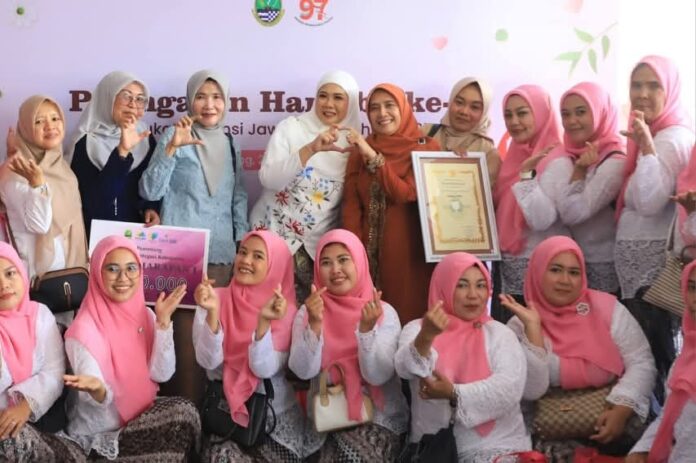 Penghargaan tersebut diterima langsung oleh Ketua TP PKK Kabupaten Bogor, Eva Rudy Susmanto, didampingi Kepala Dinas Pemberdayaan Perempuan, Perlindungan Anak, Pengendalian Penduduk dan Keluarga Berencana (DP3AP2KB) Kabupaten Bogor, dalam rangkaian Peringatan Hari Ibu ke-97 Tingkat Provinsi Jawa Barat yang diselenggarakan oleh DP3AKB Provinsi Jawa Barat di Sport Jabar Arcamanik, Kota Bandung, Selasa (23/12/2025).