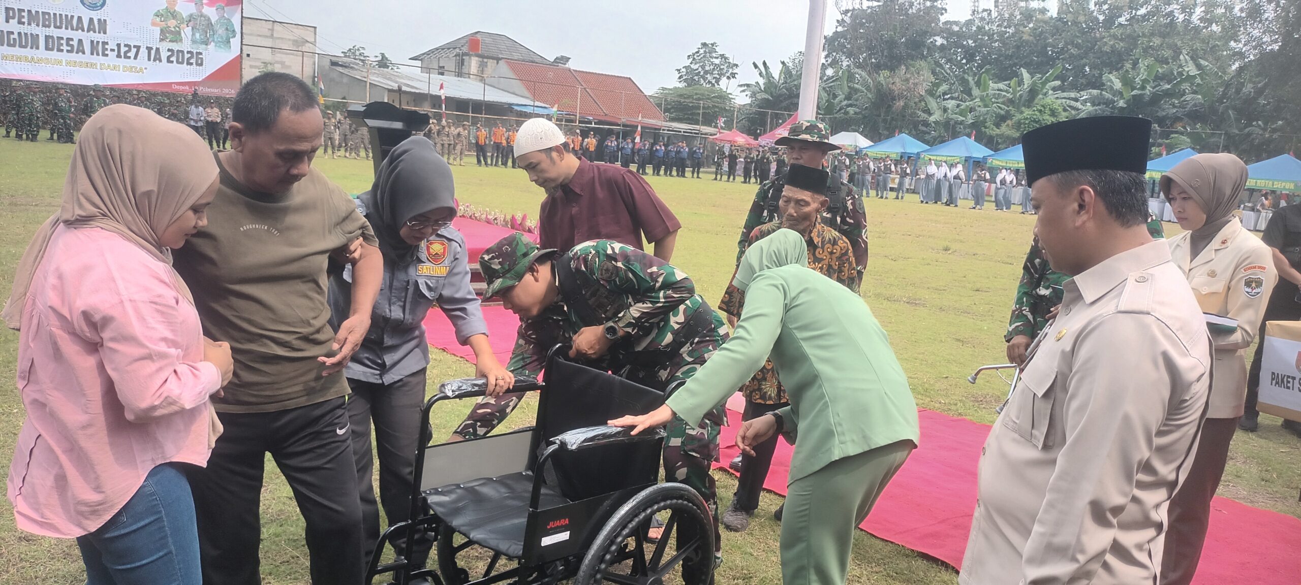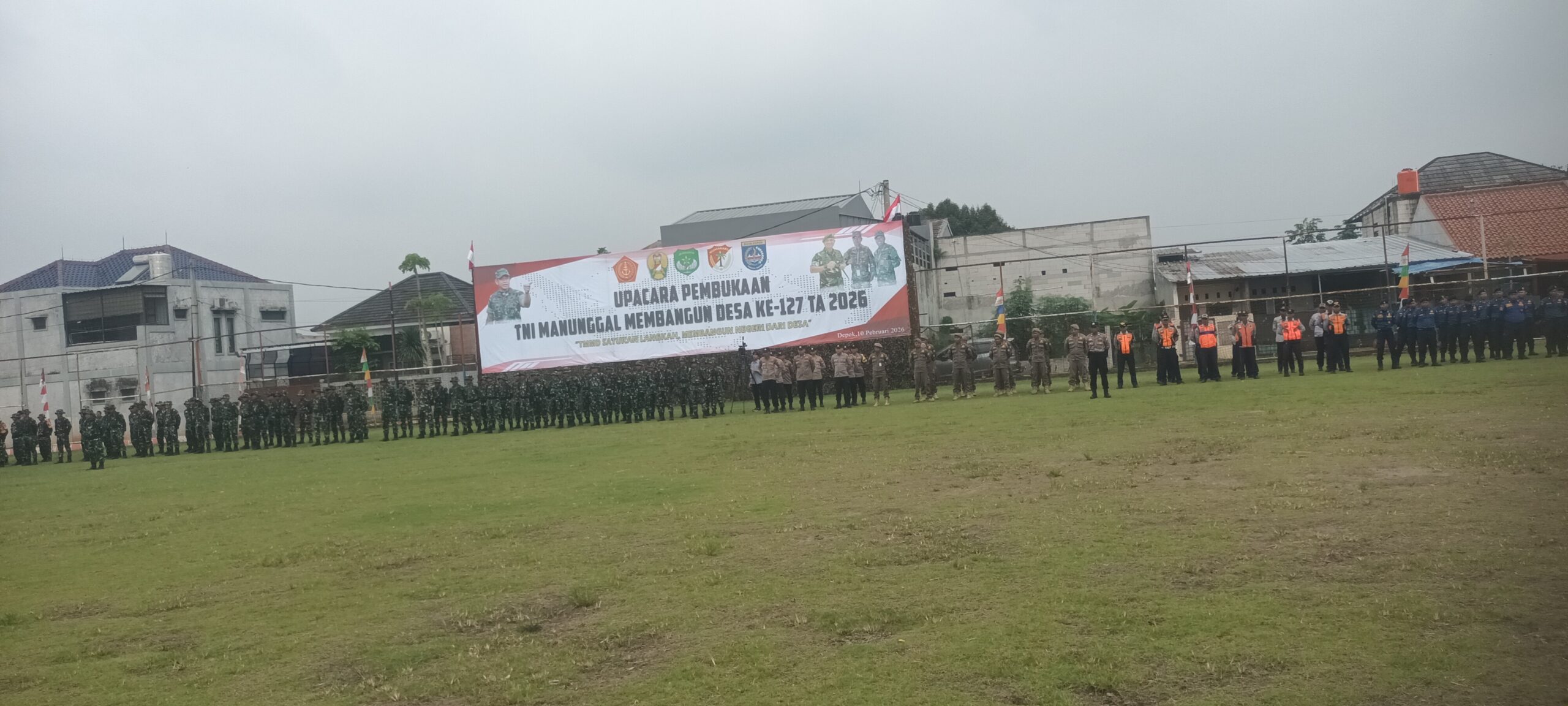 Depok, Sebagai bentuk dukungan terhadap KBT (Keluarga Besar TNI) DPC HIPAKAD Kota Depok mengikuti upacara TNI Manunggal Membangun Desa (TMMD) ke-127 di Lapangan Gelora, Kampung Bojong Lio, Kecamatan Sukmajaya, Selasa (10/2/2026).Bertindak sebagai inspektur upacara Wali Kota Depok Supian Suri.