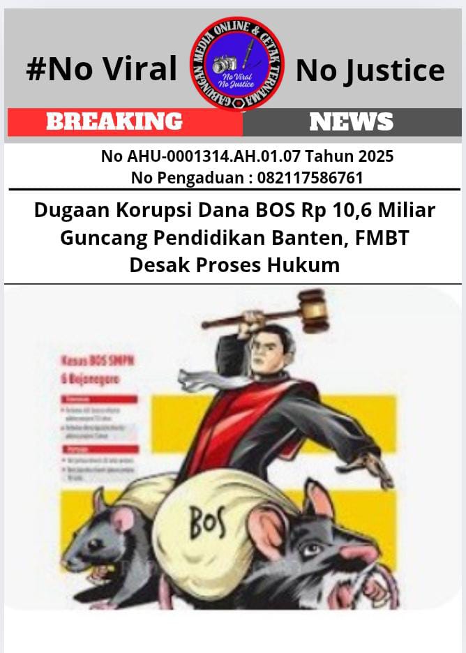 TANGERANG, monitorjabarnews.com – 13 Juli 2025 – GMOCT Gabungan Media Online dan Cetak Ternama mendapatkan informasi dari media online targetberita yang tergabung di GMOCT perihal Dugaan Skandal korupsi kembali mengguncang dunia pendidikan di Provinsi Banten. Badan Pemeriksa Keuangan (BPK) Perwakilan Provinsi Banten dalam Laporan Hasil Pemeriksaan (LHP) atas Laporan Keuangan Pemerintah Daerah (LKPD) Banten Tahun Anggaran 2024 menemukan dugaan penyelewengan Dana Bantuan Operasional Sekolah (BOS) di 61 SMA dan SMK Negeri. Total kerugian negara ditaksir mencapai Rp 10,6 miliar.