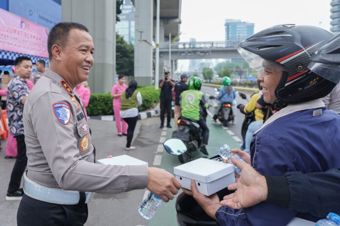 Jakarta, monitorjabarnews.com – Korlantas Polri kembali mengadakan program “Jumat Berkah,” dengan menyediakan makan siang gratis sebanyak 400 paket makanan bagi warga yang melintasi di sekitar Gedung Korlantas Polri, Jumat (1/11/2024).
