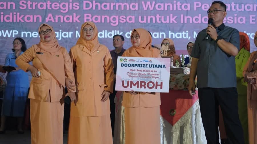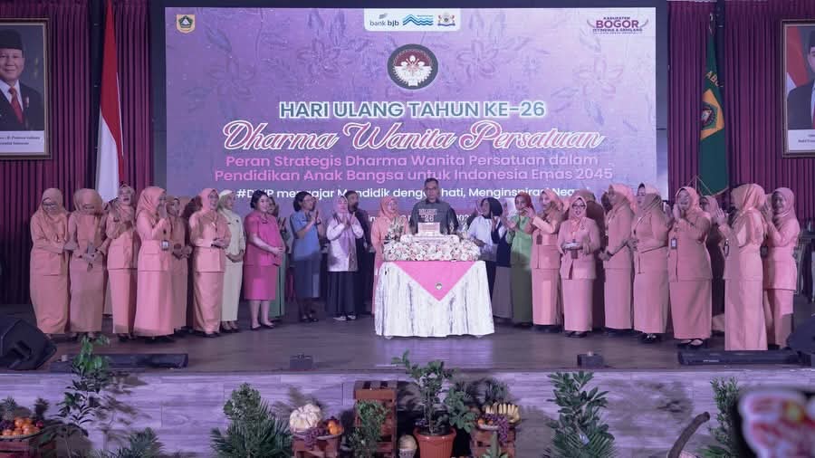 CIBINONG – Dharma Wanita Persatuan (DWP) Kabupaten Bogor memperingati Hari Ulang Tahun (HUT) ke-26, di Auditorium Sekretariat Daerah, Cibinong, Selasa (23/12). Kegiatan ini menjadi momentum refleksi serta penguatan peran strategis DWP dalam mendukung pendidikan anak bangsa menuju Indonesia Emas 2045.Mengusung tema “Peran Strategis Dharma Wanita Persatuan dalam Pendidikan Anak Bangsa untuk Indonesia Emas 2045”, peringatan HUT DWP tahun ini menegaskan bahwa anggota Dharma Wanita Persatuan memiliki posisi penting sebagai pilar keluarga yang berkontribusi langsung dalam membentuk generasi penerus yang berpendidikan, berkarakter, dan bermental kuat.Sekretaris Daerah (Sekda) Kabupaten Bogor, yang juga Penasehat DWP Kabupaten Bogor, Ajat Rochmat Jatnika menekankan, bahwa momentum ini menjadi ruang refleksi bagi seluruh anggota organisasi untuk mengevaluasi sejauh mana peran dan manfaat yang telah diberikan kepada keluarga, organisasi, dan masyarakat.“Organisasi harus terus menghadirkan nilai tambah. Pengorbanan waktu dan tenaga yang diberikan para anggota harus bermuara pada manfaat nyata, baik bagi keluarga maupun lingkungan sekitar,” tandas Ajat.