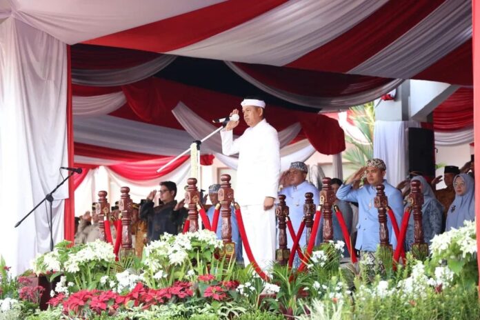CIBINONG, monitorjabarnews.com -Gubernur Jawa Barat, Kang Dedi Mulyadi (KDM) memimpin upacara peringatan Hari Jadi Bogor (HJB) ke-543, di Lapangan Tegar Beriman, Cibinong, Selasa (3/6/25). KDM berpesan, pada momentum HJB ke-543 ini mari kembalikan Bogor kepada jati dirinya sebagai tanah pusaka yang dicintai.