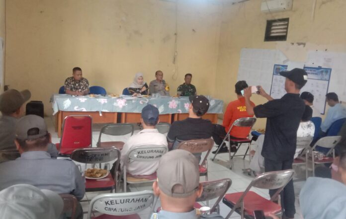 Hadir dalam acara tersebut, Lurah Cipayung Jaya Susniawati didampingi Kasi Ekbang Roih, Babinsa, Babinkamtibmas, juga para RW dan para anggota Linmas.