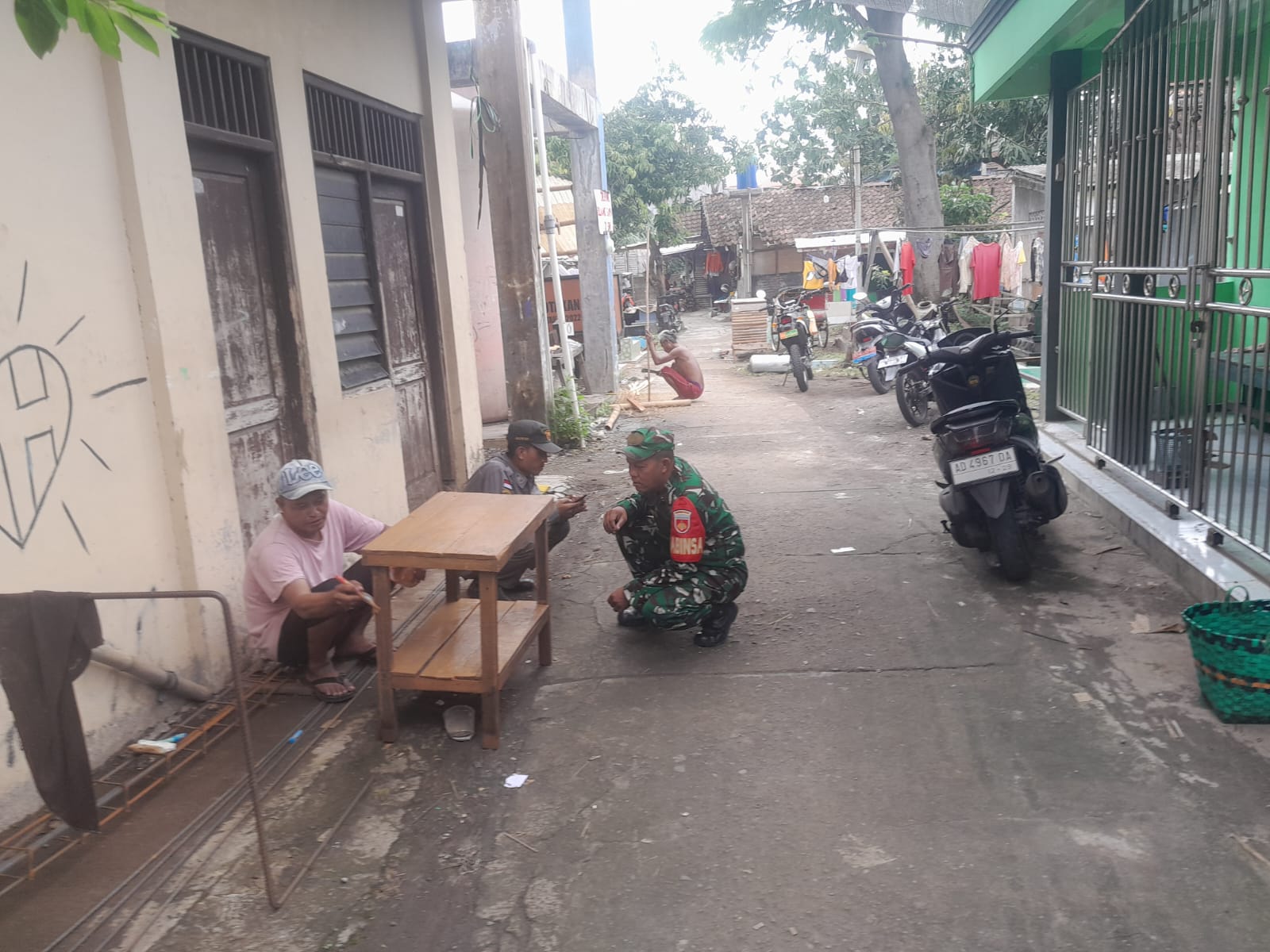 Surakarta, Dalam rangka melaksanakan Pembinaan Teritorial (Binter) di wilayah binaan, Babinsa Joyotakan Koramil 03/Serengan Kodim 0735/Surakarta Serka Sudiyono bersama Linmas datangi dan memberi motivasi Bapak Ramelan selaku pelaku UMKM yang keseharian Membuat Kursi dan Meja yang berada di Jl. Keranda Rt 02 Rw 05 Joyotakan Serengan Kota Surakarta, Jumat 28 November 2025.