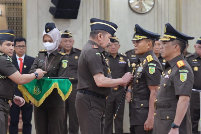 Jakarta, monitorjabarnews.com – Jaksa Agung Republik Indonesia ST Burhanuddin melantik dan mengambil sumpah jabatan atas dua pejabat baru yakni Jaksa Agung Muda Pidana Militer (JAM-Pidmil) dan Kepala Kejaksaan Tinggi Daerah Khusus Jakarta pada Jumat 18 Oktober 2024 di Aula Lt. 11 Gedung Utama Kejaksaan Agung.