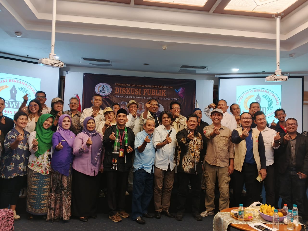 Demikian benang merah yang mengemuka dalam Diskusi Publik dalam rangka Peringatan Hari Kebebasan Pers Sedunia 2025, dengan Tema ‘Menjaga Kebebasan Pers Merawat Demokrasi Negeri”, yang digelar oleh Sekertariat Bersama Wartawan Indonesia (SWI), Kamis, 22 Mei 2025, di Aula Bank BPB Kota Depok.