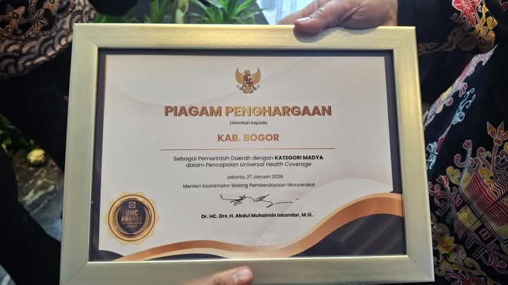 Jakarta- Dibawah kepemimpinan Bupati Bogor Rudy Susmanto Pemerintah Kabupaten Bogor kembali menorehkan prestasi membanggakan di bidang kesehatan. Pada tahun 2026, Kabupaten Bogor berhasil meraih Penghargaan Universal Health Coverage (UHC) Award Kategori Madya dengan capaian kepesertaan Jaminan Kesehatan Nasional (JKN) mencapai 99 persen serta tingkat keaktifan peserta di atas 80 persen.Penghargaan tersebut diterima langsung oleh Bupati Bogor, Rudy Susmanto, dalam acara penganugerahan UHC Award yang dihadiri oleh jajaran pemerintah pusat, kepala daerah se-Indonesia, serta pemangku kepentingan sektor kesehatan nasional, pada Selasa (27/1/26).Bupati Bogor, Rudy Susmanto, menyampaikan rasa syukur sekaligus apresiasi setinggi-tingginya kepada seluruh pihak yang telah berkontribusi dalam pencapaian tersebut.