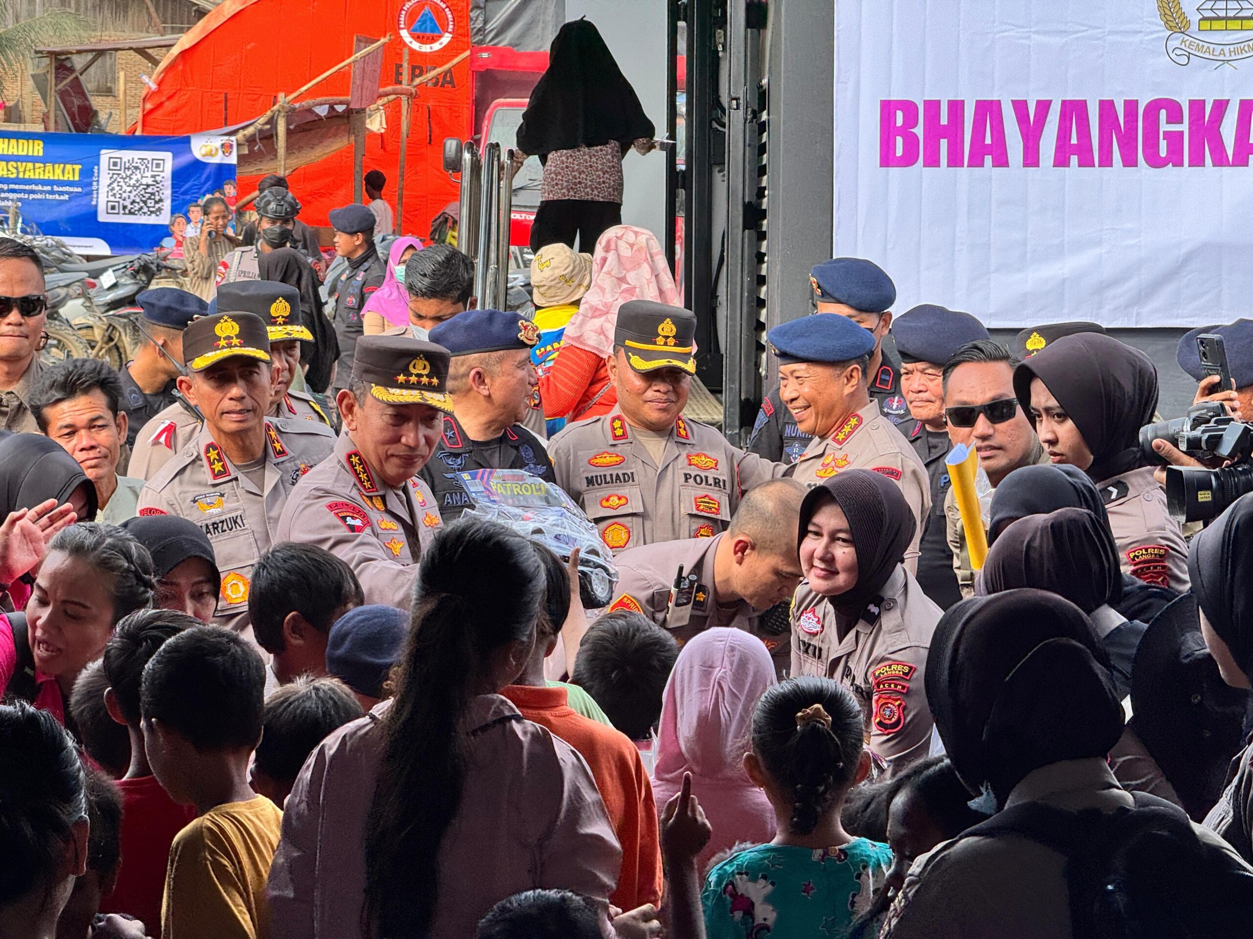 Aceh – Kapolri Jenderal Listyo Sigit Prabowo meninjau posko pengungsian bencana alam di wilayah Aceh Tamiang, Kamis (11/12/2025). Dalam kesempatan itu, Sigit menyalurkan bantuan untuk masyarakat.