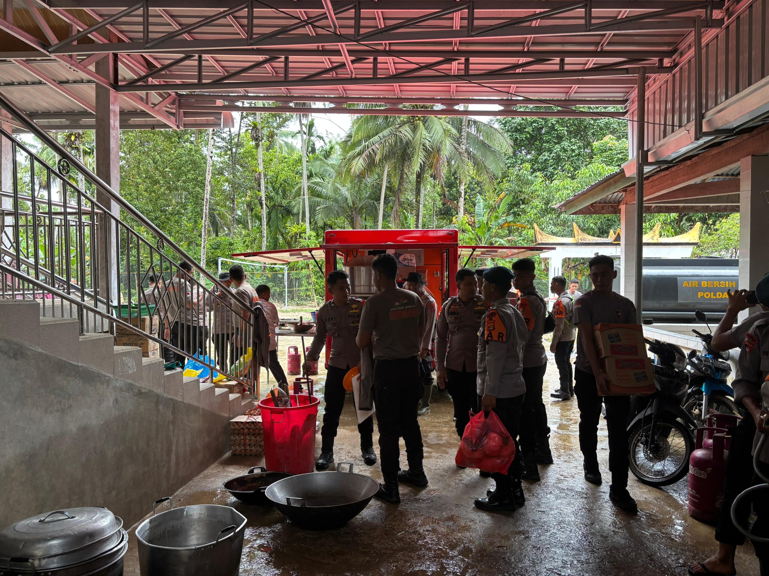 Pada sektor logistik, Polri mengoperasikan dua unit Randurlap (kendaraan dapur lapangan). Randurlap pertama ditempatkan di Nagari Kasang, dan Randurlap kedua di Nagari Kataping, Kabupaten Padang Pariaman. Kegiatan Randurlap ini didukung penuh oleh personel Sat Brimobda Lampung yang melaksanakan BKO, dengan tugas menyiapkan serta mendistribusikan makanan siap saji bagi masyarakat terdampak, sehingga kebutuhan konsumsi harian warga dapat terpenuhi secara berkelanjutan.