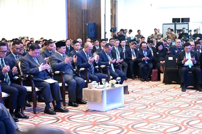 Jakarta, Presiden Prabowo Subianto menghadiri Indonesia Economic Outlook 2026 di Auditorium Wisma Danantara Indonesia, Jakarta, Jumat (13/02/2026). Menteri Koordinator Bidang Perekonomian Airlangga Hartarto melaporkan bahwa ekonomi Indonesia tumbuh sebesar 5,11 persen (yoy) dan menargetkan pertumbuhan mencapai 5,4 hingga 5,6 persen pada tahun 2026 melalui harmonisasi belanja pemerintah, investasi, serta peran Danantara sebagai mesin produksi nasional.