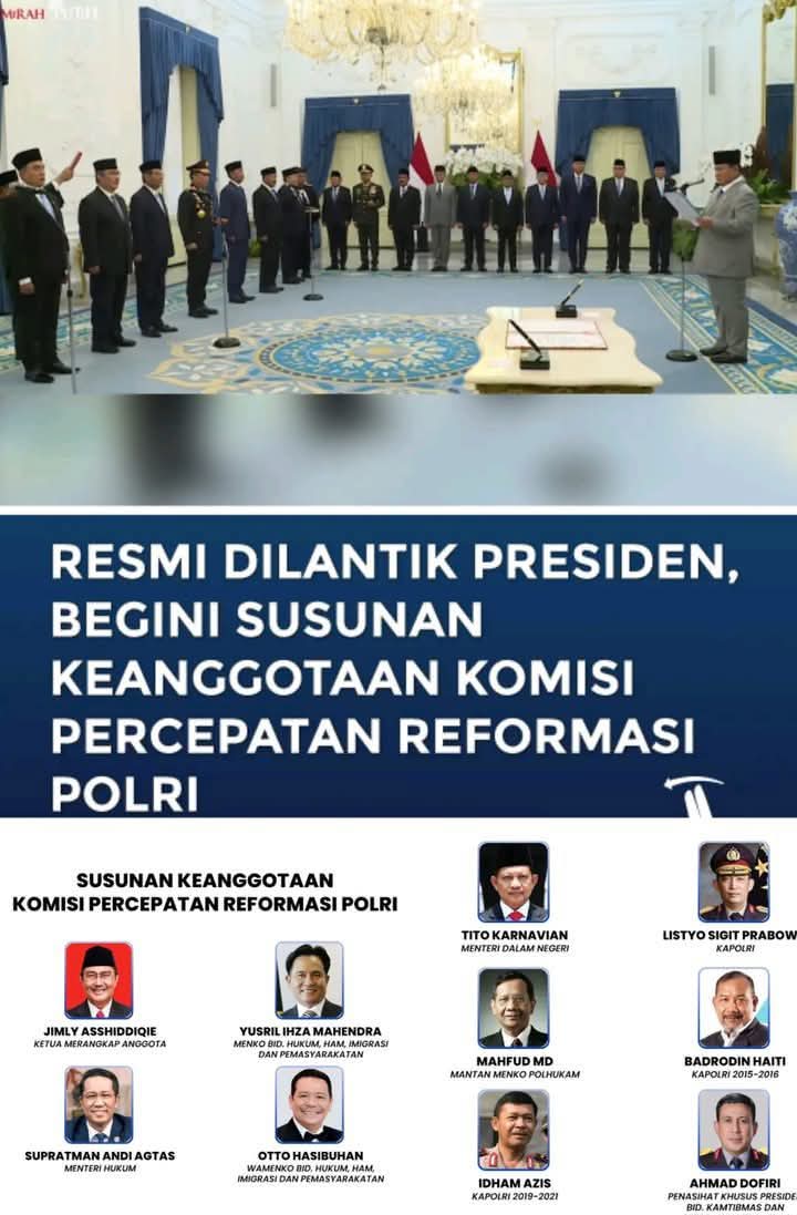Presiden Prabowo melantik Mahfud MD, Jimly Asshidiqie hingga Otto Hasibuan jadi Komite reformasi Polri
