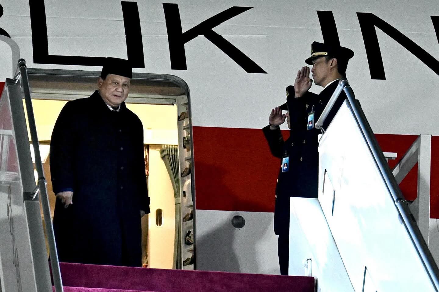 Yordania, Presiden RI Prabowo Subianto tiba di Bandar Udara Militer Marka, Amman, Kerajaan Yordania Hasyimiah, Selasa (24/02/2026), sekitar pukul 20.00 waktu setempat, dengan pengawalan dari pesawat tempur F-16 milik Angkatan Udara Kerajaan Yordania Hasyimiah. Setibanya di bandara, Kepala Negara disambut hangat oleh Putra Mahkota Kerajaan Yordania Hasyimiah, Prince Al Hussein bin Abdullah II, beserta jajaran pejabat tinggi kedua negara.