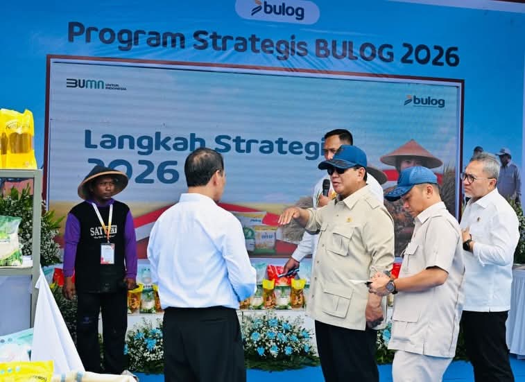 Karawang, Presiden Prabowo Subianto meninjau berbagai inovasi inovasi hilirisasi dan teknologi pertanian modern dalam rangkaian kegiatan Panen Raya di Desa Kertamukti, Kabupaten Karawang, Provinsi Jawa Barat, Rabu (07/01/2026).