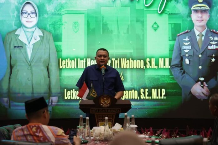 CIBINONG — Bupati Bogor, Rudy Susmanto menegaskan pentingnya sinergi antara TNI dan Pemerintah Kabupaten Bogor dalam momentum lepas sambut Komandan Kodim (Dandim) 0621/Kabupaten Bogor yang digelar di Pendopo Bupati Bogor, Cibinong, Senin (23/2).