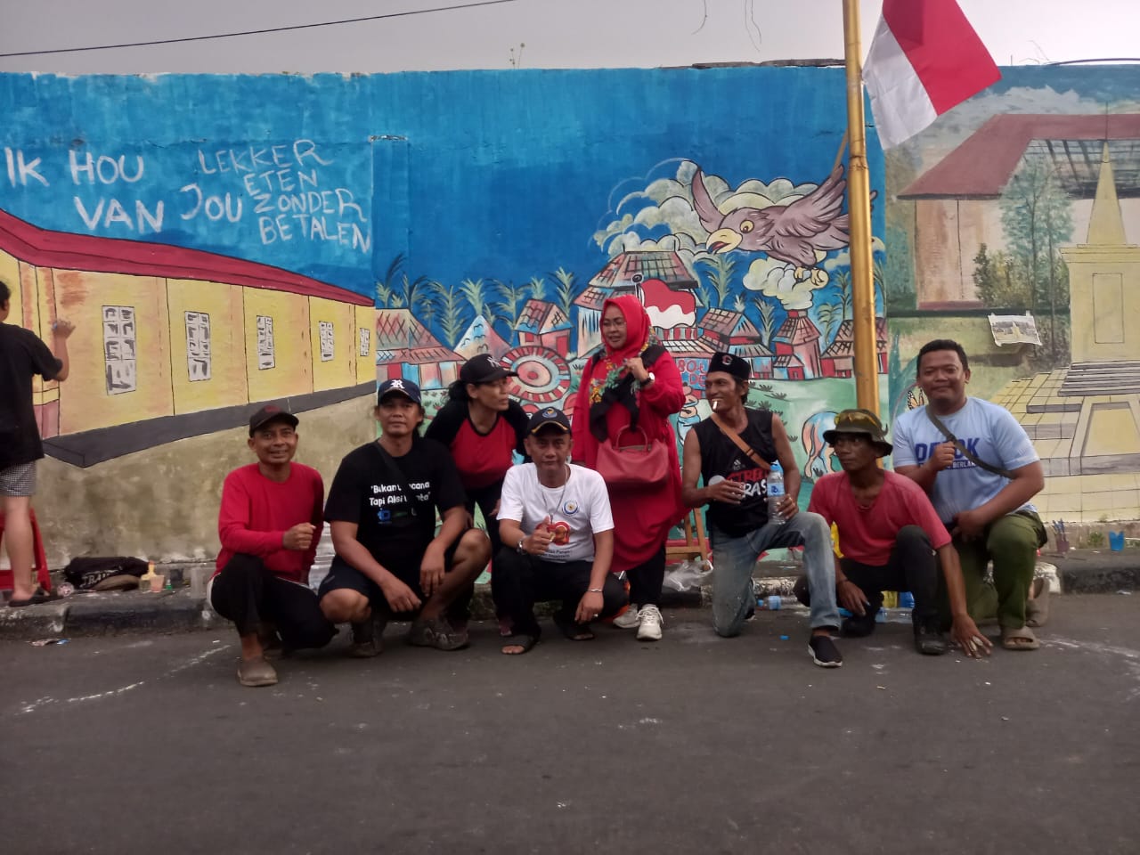 Depok, monitorjabarnews.com – Boges Marhaen dari Front Pembela Merah Putih Dkk Street Grass , Hendra Korcam beji , Dina ,Eka ,Ramli , Fahri, Eka, Ahmad Sopian , Turut meriahkan Mural 80 tahun indonesia merdeka di jalan Pemuda minggu 24 agustus 2024
