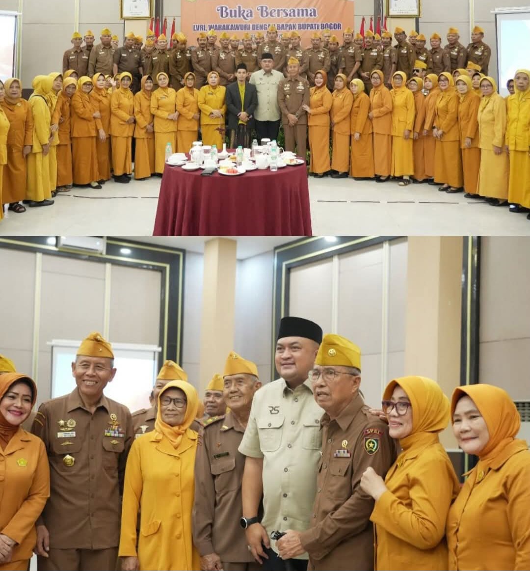 CIBINONG – Bupati Bogor, Rudy Susmanto, menghadiri silaturahmi dan buka puasa bersama keluarga besar Legiun Veteran Republik Indonesia (LVRI) Kabupaten Bogor, di Hotel Horison Ultima Sayaga, Cibinong, Selasa, (10/3). Dalam kesempatan tersebut, Rudy menyampaikan rasa hormat dan terima kasih yang mendalam kepada para anggota LVRI dan warakawuri atas pengabdian serta pengorbanan mereka dalam menjaga keutuhan bangsa dan negara.