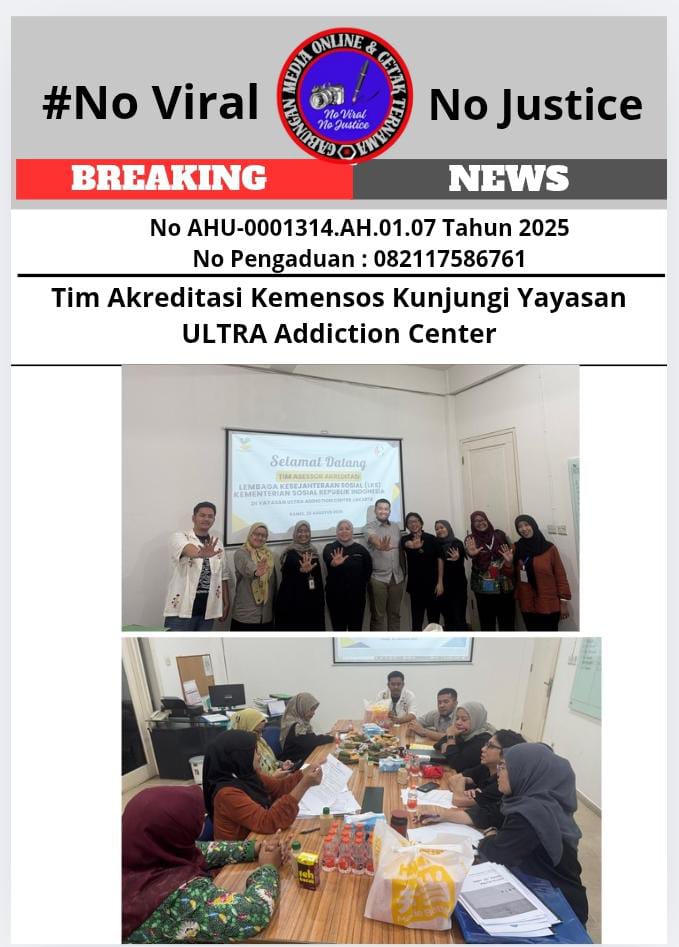 Jakarta, monitorjabarnews.com 30 Agustus 2025 – Yayasan ULTRA Addiction Center menerima kunjungan dari Tim Akreditasi Kementerian Sosial Republik Indonesia (Kemensos RI) pada Kamis, 28 Agustus 2025. Kunjungan ini merupakan bagian dari proses perpanjangan akreditasi lembaga rehabilitasi sosial yang dikelola oleh yayasan tersebut.