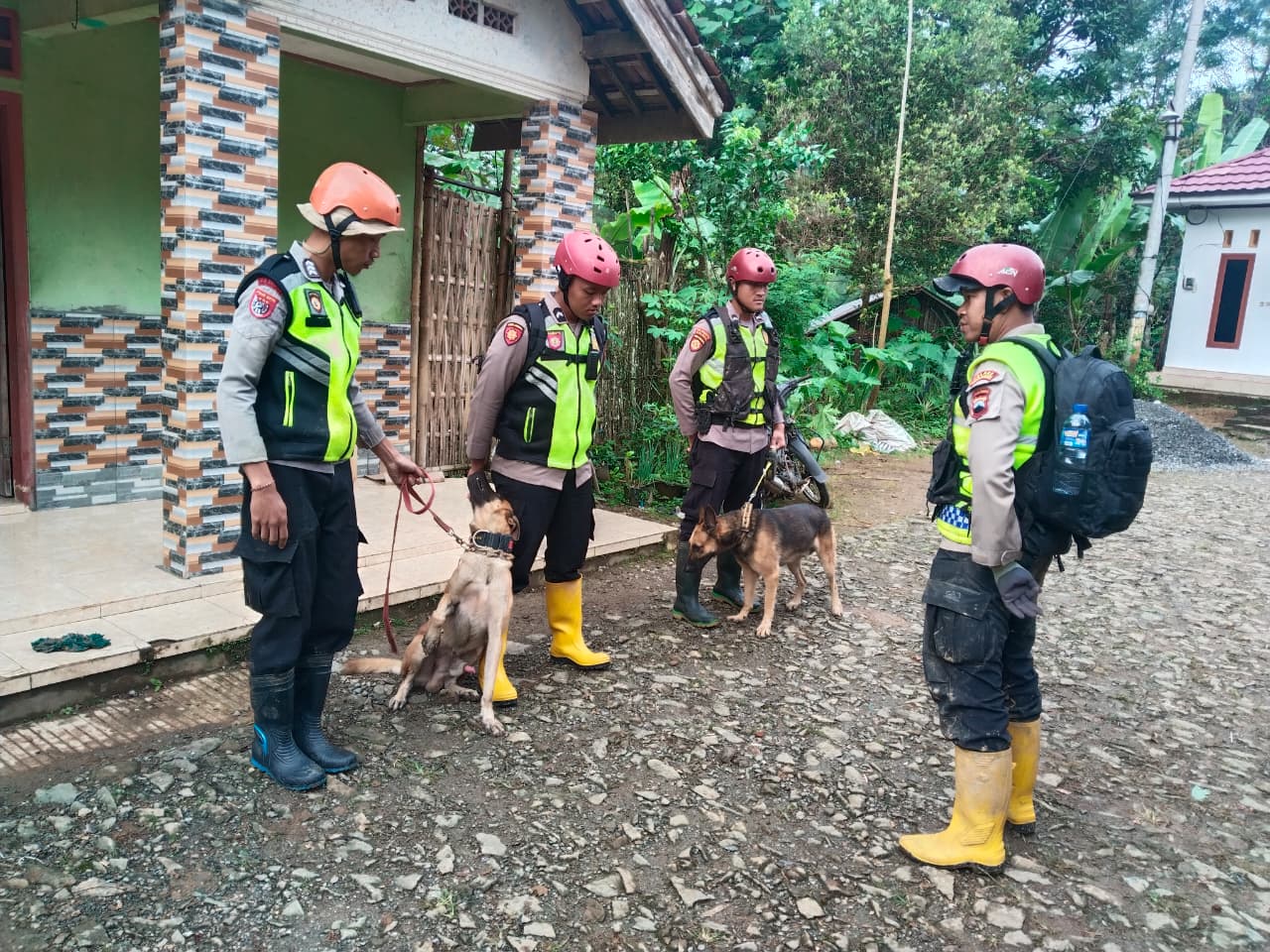 Empat (4) ekor anjing pelacak berkemampuan SAR (Search and Rescue) terbaik dikerahkan, yaitu